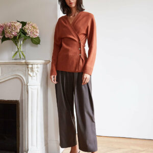 Brown Scarf Button Sweater