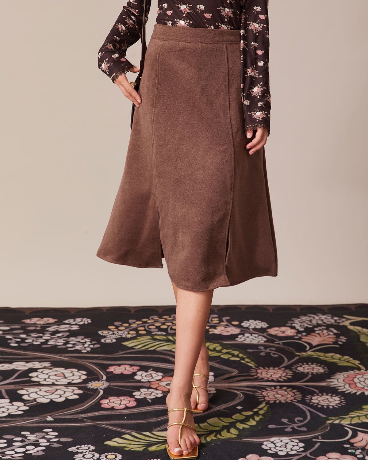 The Coffee High Waisted Suede Slit Midi Skirt