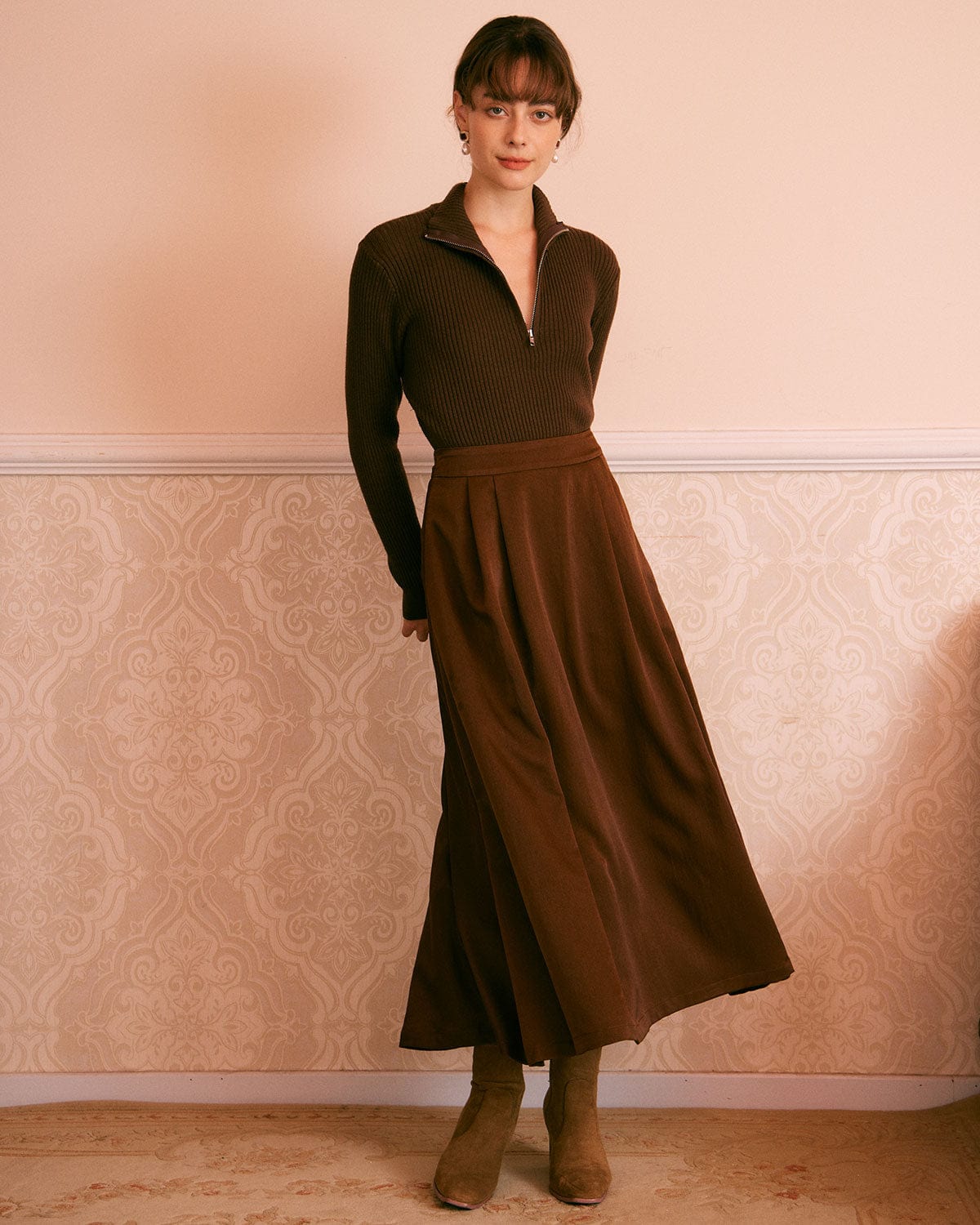 The Coffee Natural Waisted Pleated Midi Skirt
