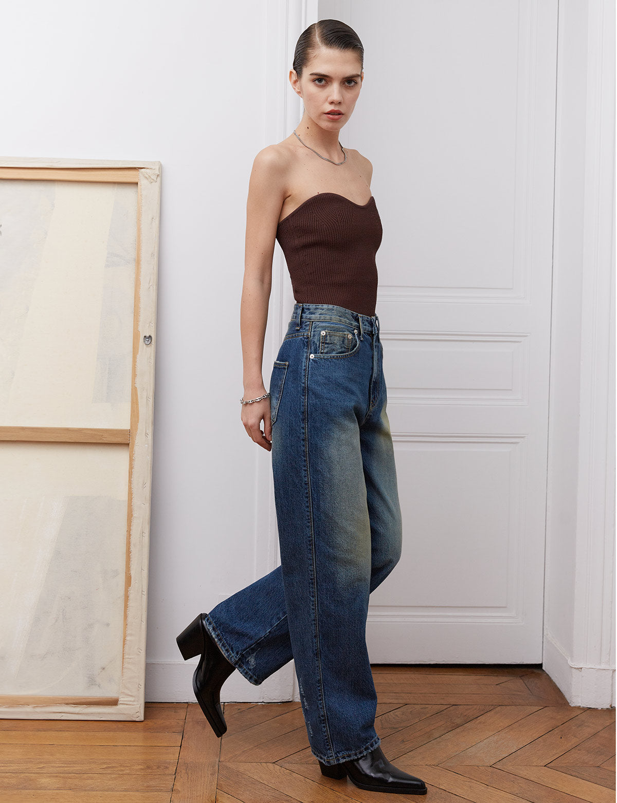 Structured thick chocolate brown knit strapless bustier top . Make a statement in this sweetheart neckline knit top.