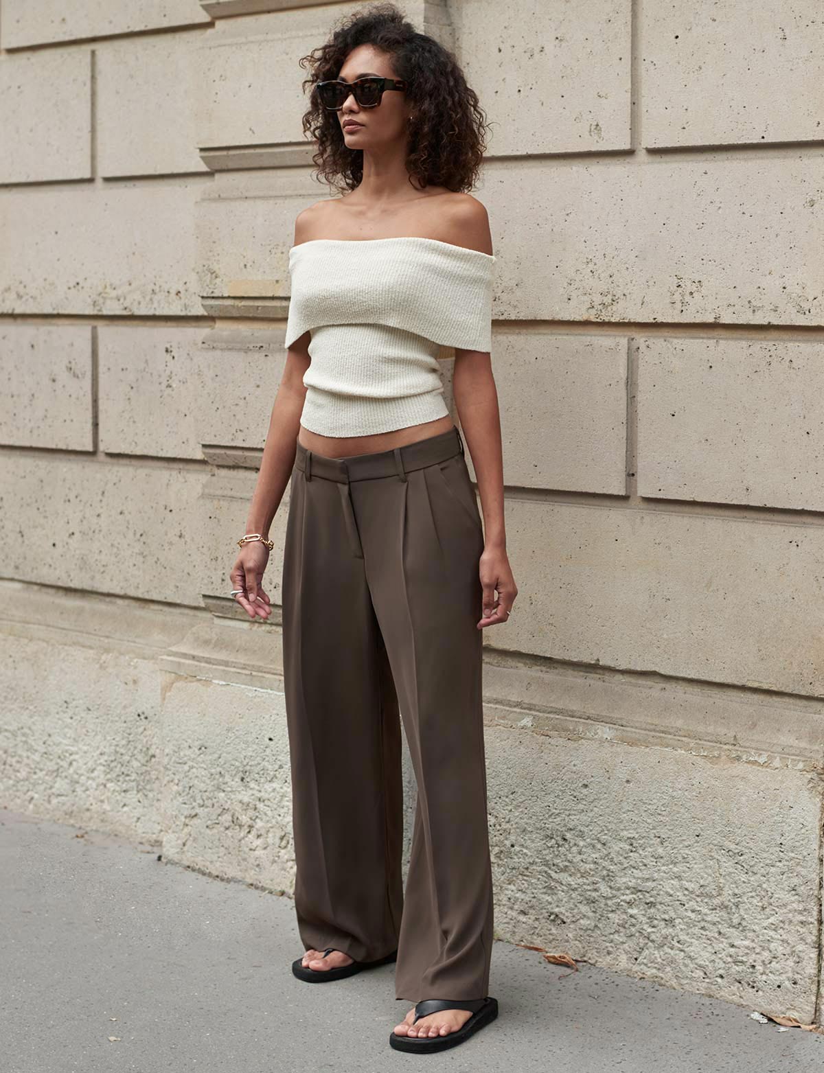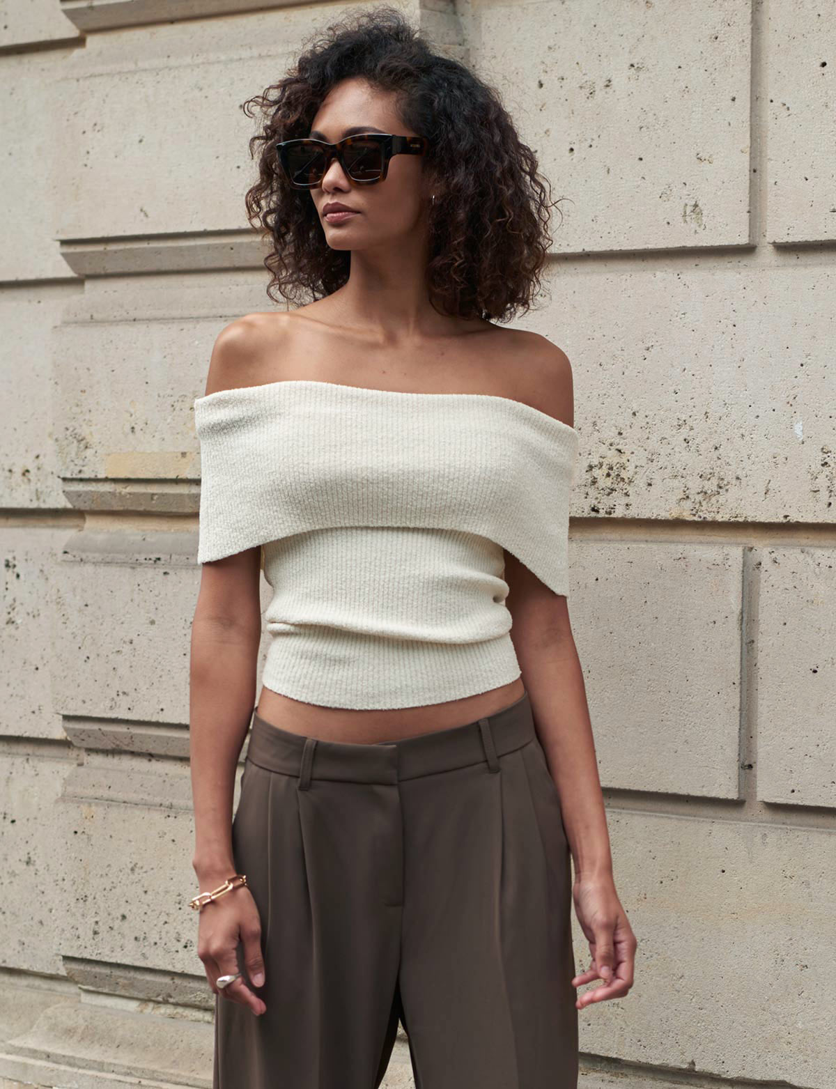 & Free ShippingTextured soft knit off the shoulder fold top .