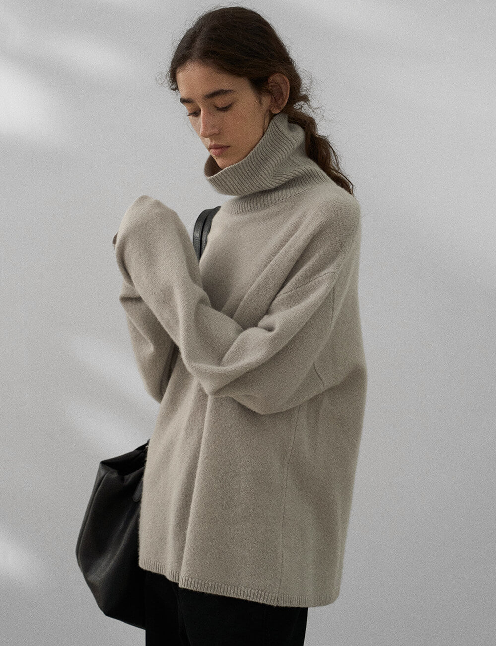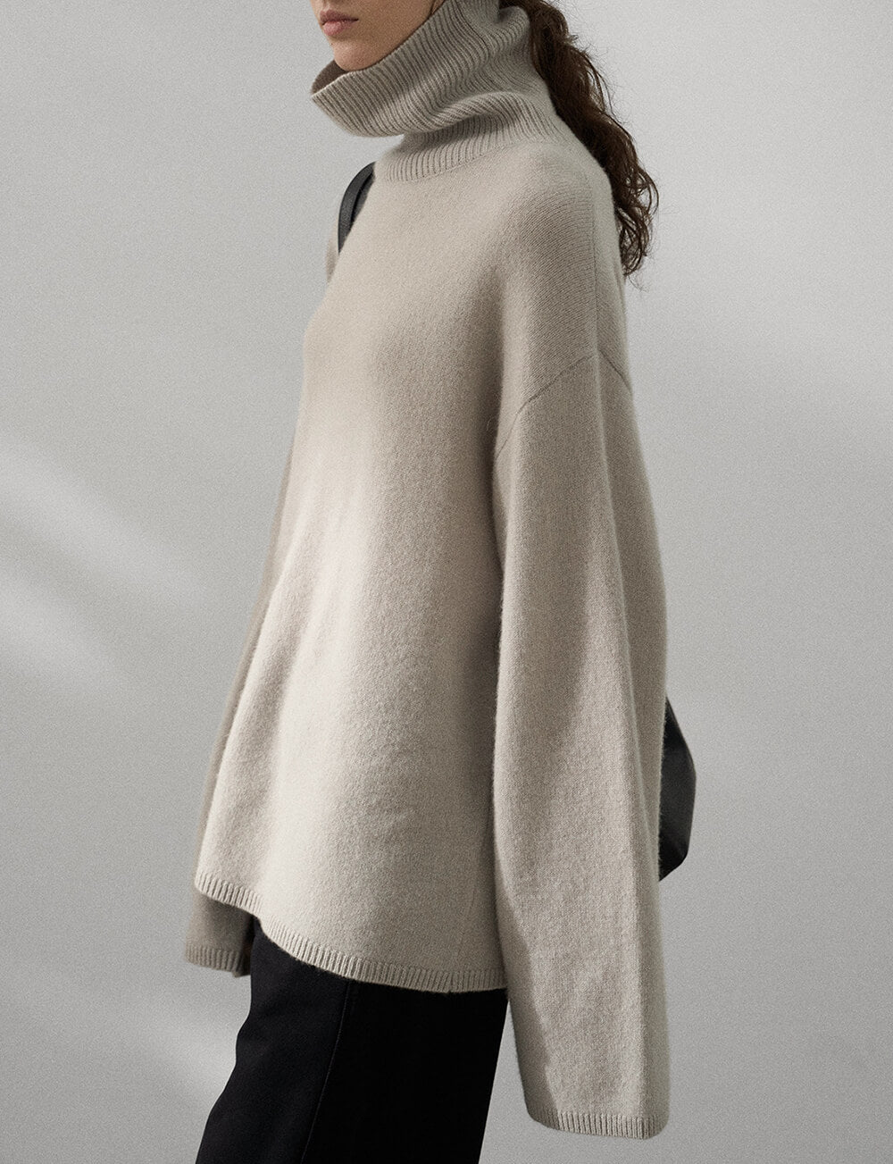 Oversize soft wool turtleneck sweater .